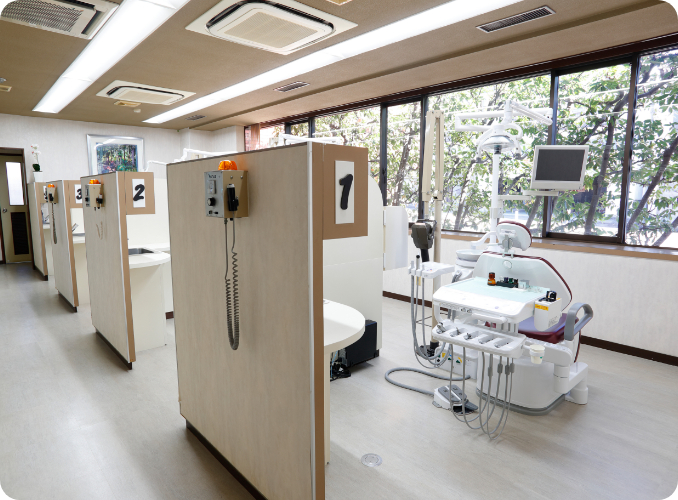 愛生歯科医院では、世代を問わず皆さまに安心して気軽に通っていただけるよう、リラックスして過ごせる空間づくりと、清潔で安全な環境づくりに努めています。