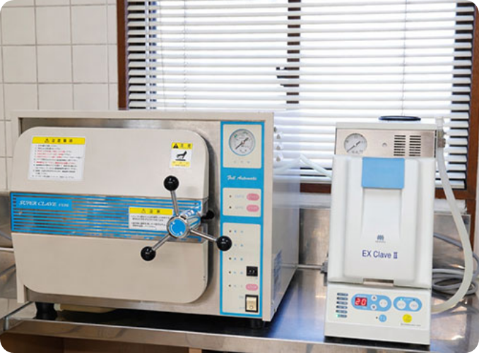 口腔内で使用する器具は滅菌済みのものを使用しております。