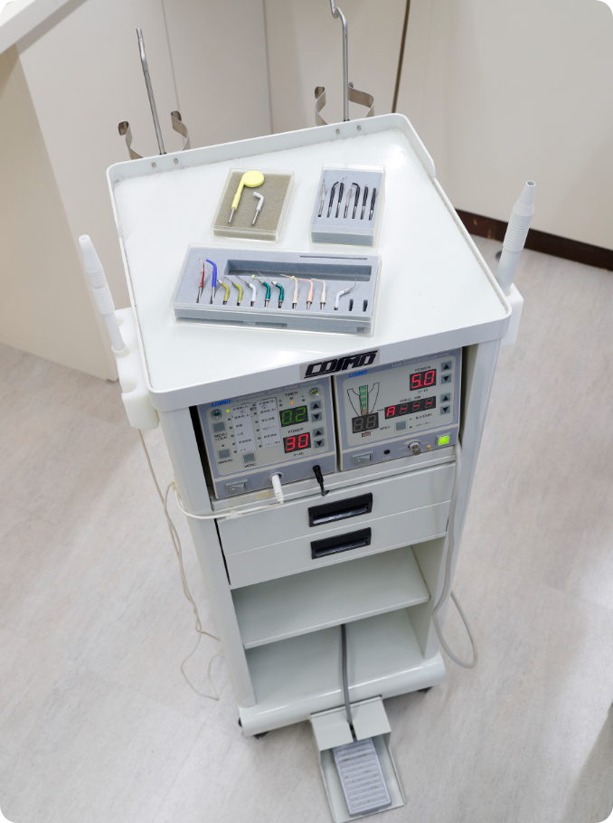 歯周病菌の殺菌や根管治療、知覚過敏の軽減などに使用する装置です。