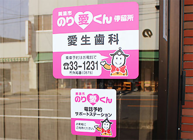 愛生歯科医院の玄関前で、美濃市の乗り合わせタクシー「のり愛くん」の乗降が可能です。